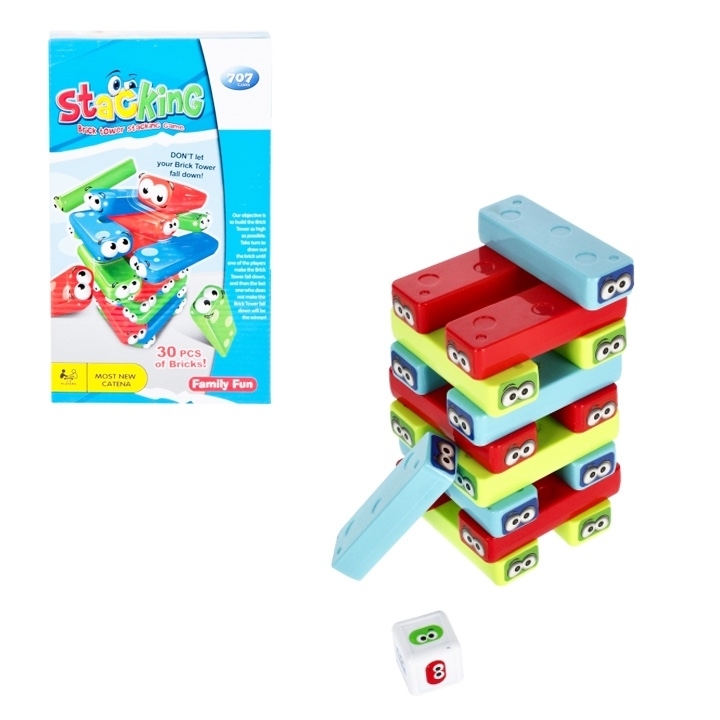 Toto je skutečná lahůdka pro fanoušky populární hry. Vzrušující, napínavá zábava. Můžete postavit věž pomocí barevných cihel. Připravte se na smích a hodně překvapení, střídejte bloky různých barev a ukládejte je na vrch, aby se věž nezhroutila! Sada obsahuje: 30 kusů barevných kostek, kostky....