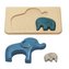 Bavte se spolu se sloní rodinou. Děti mohou slony skládat jako puzzle do připravené desky a rozvíjet tak nejen své motorické dovednosti, ale učit se i řešit problémy. A pokud je již puzzle omrzí, mohou se slony vytvořit různé příběhy a povzbuzovat tak svou představivost.