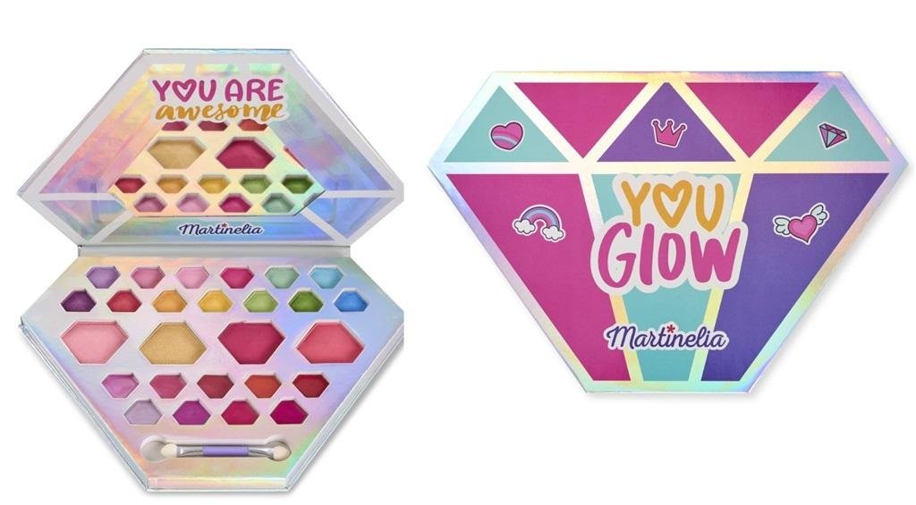Zestaw kosmetyków dla dzieci zawiera 11 cieni do powiek, 3 róże, 5 błyszczyków do ust, aplikator, lustro. przeczytaj całość