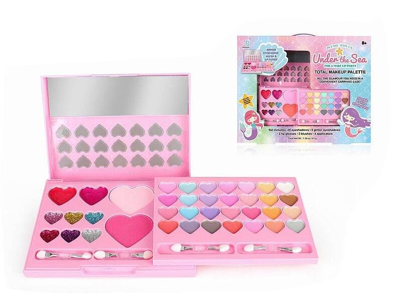 Zawiera 28 cieni do oczu- 6 brokatowych cieni do powiek- 2 błyszczki do ust- 4 aplikatory- Produkt nie wymaga użycia baterii- Zestaw przeznaczony jest dla dzieci od 8 roku życia przeczytaj całość