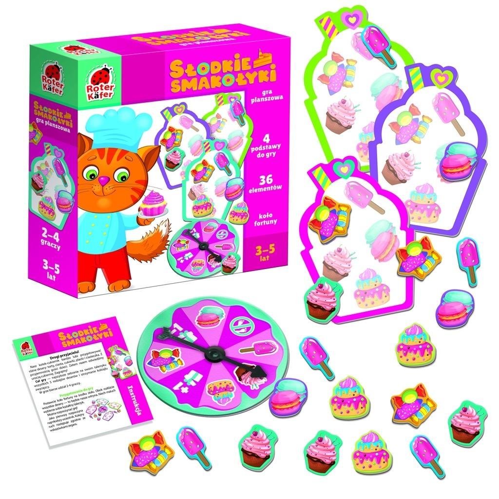 Lubisz słodycze? Przygotowaliśmy dla Ciebie pyszne smakołyki! Zakręć kołem fortuny z kolegami po kolei i napełnij swój kubek słodyczami. Kto pierwszy sobie poradzi, wygra. Lub graj samodzielnie i sortuj smakołyki. Jednocześnie można ćwiczyć liczenie do 5.