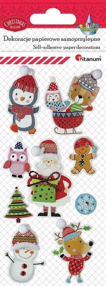 Dekoracje samoprzylepne papierowe 3D Mikołaj, pingwin, sowy, ciastek, renifer, bałwanek, choinka, płatek śniegu 9szt. przeczytaj całość