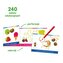 Poręczna edukacyjna książeczka zawiera 240 rozwijających zadań dla dzieci od 3 lat. Każda strona składa się z części z zagadką, informacją lub zadaniem oraz fragmentu do gryzmolenia i zakreślania. Dzięki perforacji możecie oderwać strony do rysowania i cieszyć się kompaktową książeczką z ciekawostkami.