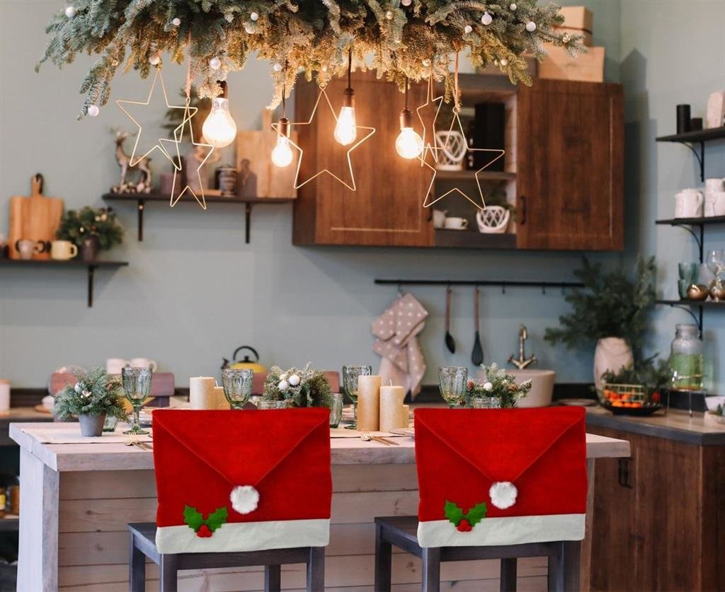 Pokrowiec na krzesło Czapka Mikołaja, 49x72 cm Ilość: 1 szt. Wymiary: długość całkowita 72cm, szerokość 49 cm Materiał: filc Pokrowiec na krzesło o wzorze czapki Świętego Mikołaja w kolorze biało-czerwono-zielonym. Wykonany z jakościowego filcowego materiału. Zdobiony zieloną naszywką na kształt... przeczytaj całość