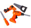Narzędzia w dużej walizce to doskonała zabawka dla małego majsterkowicza. Wszystkie narzędzia po zabawie można schować do środka.Kiedy naciskamy przycisk wiertarki, wiertło obraca się.W skład zestawu wchodzi m. in.:walizka,piła,młotek,wiertarka,śrubokręt,kątownik,klucze,śruby,nakrętki. przeczytaj całość