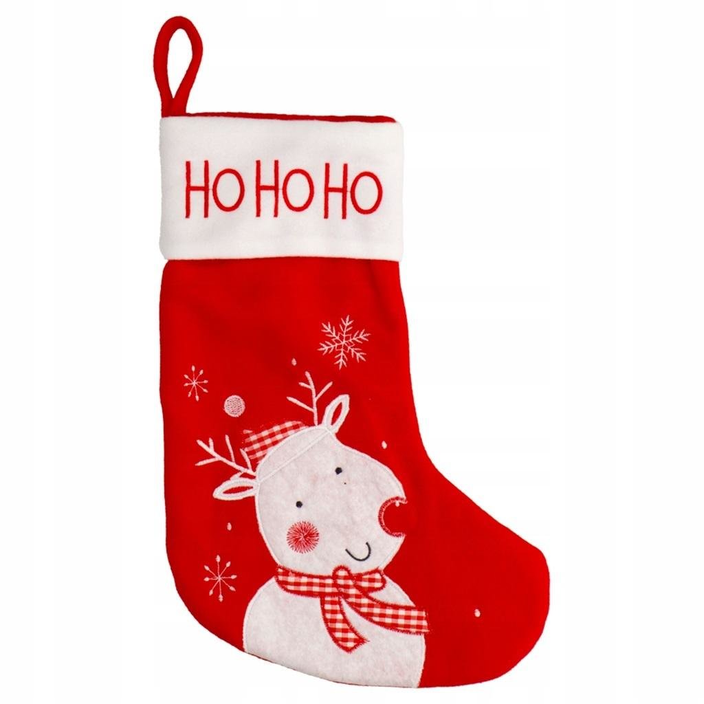 Skarpeta świąteczna.Dekoracyjna skarpeta świąteczna - but na prezenty. Wykonana z przyjemnego i miękkiego materiału. Górna część wykończona białym materiałem z wyszytym napisem. Z przodu tekstylna aplikacja. Bardzo gustowna i stylowa.Świetna dekoracja domu w czasie świątecznym, jak również super...