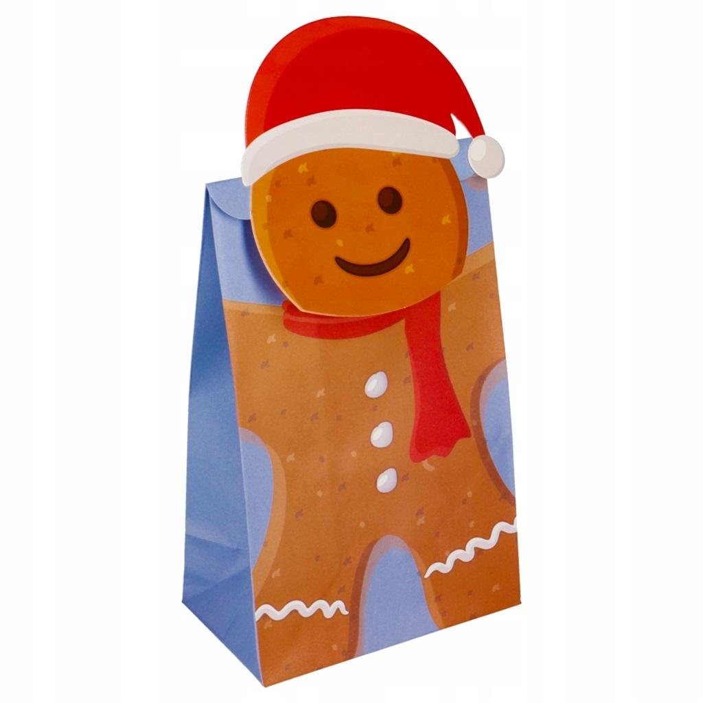 Torebki Ciastek na prezent Mikołajkowy 2 sztuki:wykonane z papieru,zamykane pokrywką w kształcie głowy świątecznej postaci,pojemne idealne do różnych prezentów,świetnie sprawdzą się do prezentów mikołajkowych,idealne na słodycze i inne drobiazgi,2 sztuki w zestawie,wymiar torebki: 13 x 27 cm. przeczytaj całość