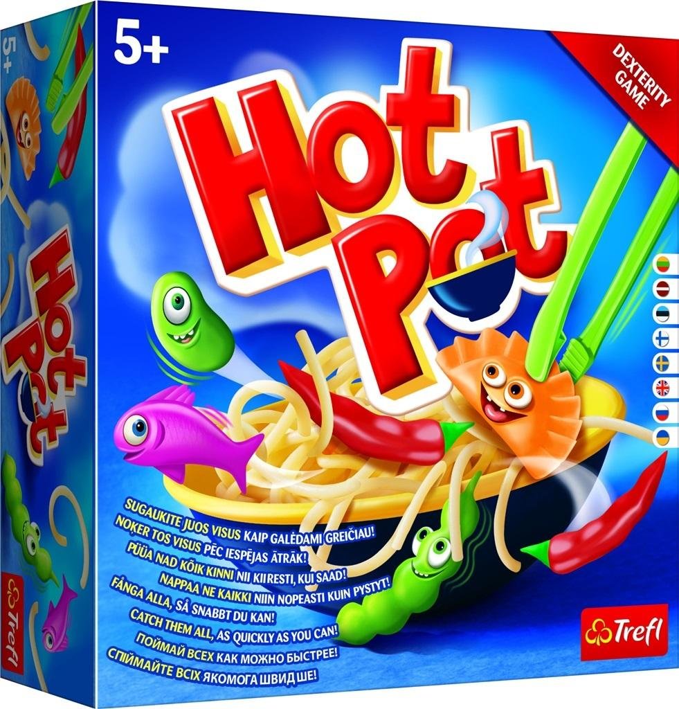 Hot Pot UA TREFL."Hot Pot" to nowa, zabawna, familijna gra zręcznościowa od polskiego producenta Trefl, w której gracze za pomocą szczypiec lub pałeczek jednocześnie szybko łapią z miski wypełnionej spaghetti niezbędne składniki zgodnie z powierzonymi im zadaniami na specjalnych kartach.Zestaw...