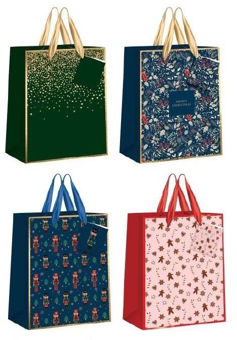 Miks wzorów, towar wysyłany losowo. Cena za sztukę.Wyjątkowa torebka do pakowania prezentów. Wykonana z wysokiej jakości papieru 190 g. Eleganckie, matowe wykończenie. Złote, połyskujące detale w technologii hot-stamping. Wzmocniony, sztywny spód. Bilecik z miejscem na życzenia lub imię...