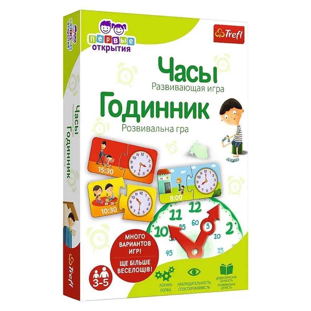 Mały odkrywca - Zegar UA TREFL.Zegar to układanka edukacyjna, która w przyjazny sposób uczy określania godzin w formacie analogowym i cyfrowym oraz przyporządkowywania różnych czynności odpowiednim porom dnia. W grze zastosowano rysunki przedstawiające typowy dzień przedszkolaka (tj. znane...
