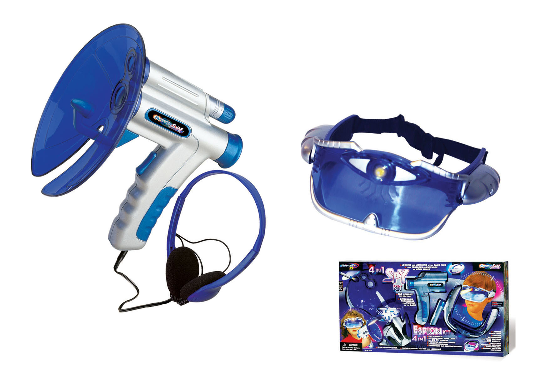 Nezbytná výbava pro každého špiona. Špionská sada potěší všechny malé agenty. Zůstaň v utajení, nasaď si brýle pro noční vidění a pozoruj v noci svého nepřítele. Co se kde šeptá ti pomůže odhalit odposlouchávač se svítilnou, na který můžeš připojit sluchátka.