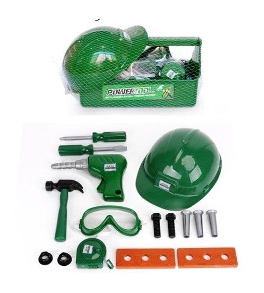 Zestaw narzędzi dla małego majsterkowicza zapakowany w plastikowej skrzyni. Narzędzia, które wchodzą w skład zestawu to: piła, młotek, kask, okulary, śrubokręty, śruby. Produkt zapakowany w worek z siateczki. Zabawka dla dzieci od 3 lat. przeczytaj całość