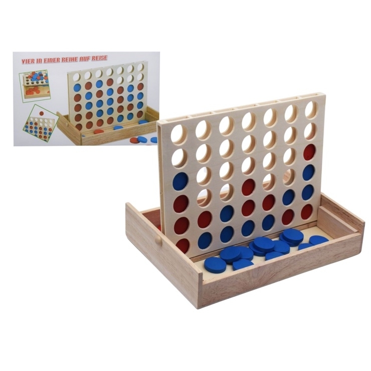 Dřevěné piškvorky – hra pro dvě osoby. Princip hry – vítězem je hráč, který jako první postaví 4 vlastní žetony, ať už vertikální, horizontální nebo diagonální. Balení obsahuje - hrací desku, 21ks červených a 21ks modrých žetonů. Nevhodné pro děti do 3 let.Rozměr - 23,5x15x15,5cm przeczytaj całość