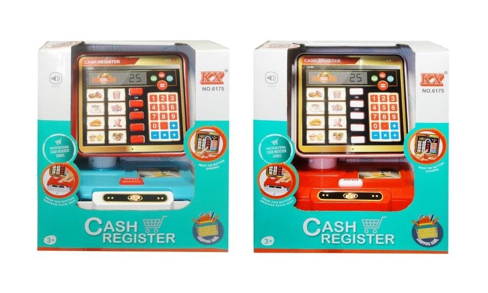 Zabawka kasa na baterie. Kasa posiada nowoczesny wygląd. Wydaje dźwięki, a po naciśnięciu przycisku w dole otwiera się szuflada. Zabawka działa na baterie tupu AA. Baterie nie są załączone do zabawki.Produkt występuje w kilku wersjach kolorystycznych, wybierany losowo. Cena dotyczy jednej sztuki. Kasa zapakowana w kartonowe opakowanie z okienkiem. Produkt dla dzieci od 3 lat. Podane wymiary są wymiarami opakowania.