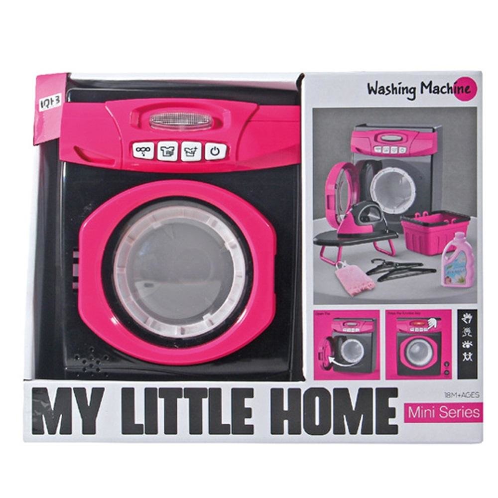 Pralka z dźwiękami i światłem. Zestaw zawiera również żelazko i deskę do prasowania, wieszaki, koszyk na pranie i buteleczkę z płynem do prania. Wymaga baterii: 3xAA (niedołączone) Wymiary opakowania: 26 x 9.8 x 20.8 cm przeczytaj całość
