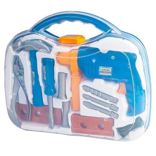 NARZĘDZIA W WALIZCENarzędzia w dużej walizce to doskonała zabawka dla małego majsterkowicza. Wszystkie narzędzia po zabawie można schować do środka.Kiedy naciskamy przycisk wiertarki, wiertło obraca się.Śrubokręt na 2 końcówki do wymiany (z końcówką płaską i krzyżykiem)Skład zestawu:walizka...