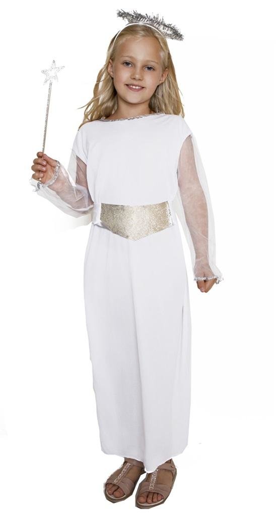 Komplet zawiera długą sukienkę, aureolę oraz pasek Idealny na jasełka oraz imprezę tematyczną. Rozmiar: M (120-130 cm) przeczytaj całość