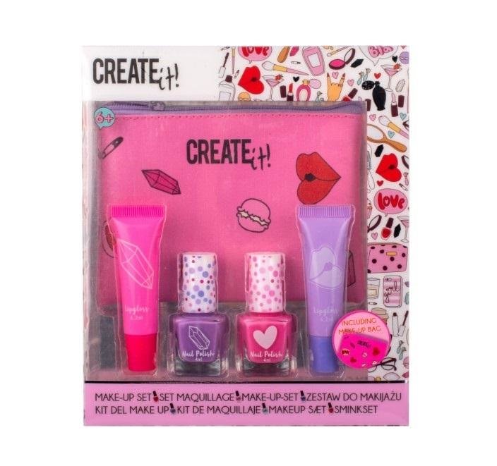 Zestaw makeup z kosmetyczką CREATE IT!Zestaw do makijażu z kosmetyczką. Zestaw zawiera dwa lakiery do paznokci w jasnych kolorach. Lakiery do paznokci są łatwe w aplikacji i szybko wysychają. Te kolory przyciągną uwagę znajomych, ponieważ są bardzo jasne. Zestaw z kosmetyczką, który zawiera 2...