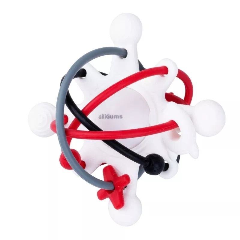 Kontrastowa grzechotka wprowadzi do świata Twojego Malucha odrobinę magii w stylowej, galaktycznej odsłonie. W centralnym punkcie znajduje się grzechoczące kula, a naokoło niej rozpościerają się miękkie, elastyczne linki, po których przesuwać możemy ruchome elementy. Kształt zabawki i jej wymiary...