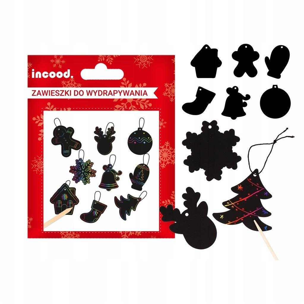 Zestaw kreatywny Magiczna Wydrapywanka świąteczne zawieszki magiczny wydrapywanka w postaci zawieszek do przygotowania zawieszki w świątecznym kształcie do wydrapywania pod czarną farbą do zdrapywania znajduje się tęczowy zadruk 9 zawieszek każda o wielkości ok. 10cm świetna...