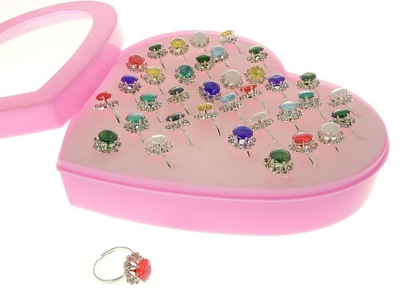 zestaw 36 pierścionków, regulowane w plastikowym etui - serce; Box przeczytaj całość