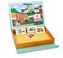 Elegantní magnetické puzzle od známého výrobce hraček Lelin. Po otevření balení vidíme 2 tabule s magnetickými prvky a 8 karet vozidel s drobnými magnety k jejich připevnění. Ale k čemu bych je tady přikládal? Kouzlo produktu je v tom, protože balení produktu je zároveň polem pro připevnění...