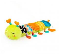 Kolorowa gąsieniczka grzechocze wesoło, zachęcając maluchy do wspólnej zabawy! Poszczególne segmenty jej ciałka uszyte zostały z materiałów o różnych fakturach, w tym takiego, który szeleści, a wszystko po to, aby stymulować zmysły dziecka, wpływając korzystnie na rozwój jego zdolności...