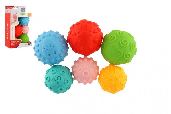 Sada míčků 6ks s texturou gumové 6-8cm v krabici 15x24x8cm 6m+