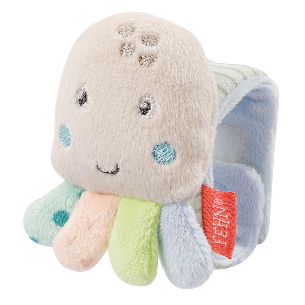 Hebký chrasticí náramek z kolekce Děti mořeZábavná a rozvíjející hračka na doma i na cesty. Měkké materiály chrasticího náramku chobotnice z kolekce Děti moře přilne k jemné dětské pokožce a zajistí příjemnou zábavu na celý den. Roztomilá chobotnička na náramku při zatřesení vesele chrastí,...