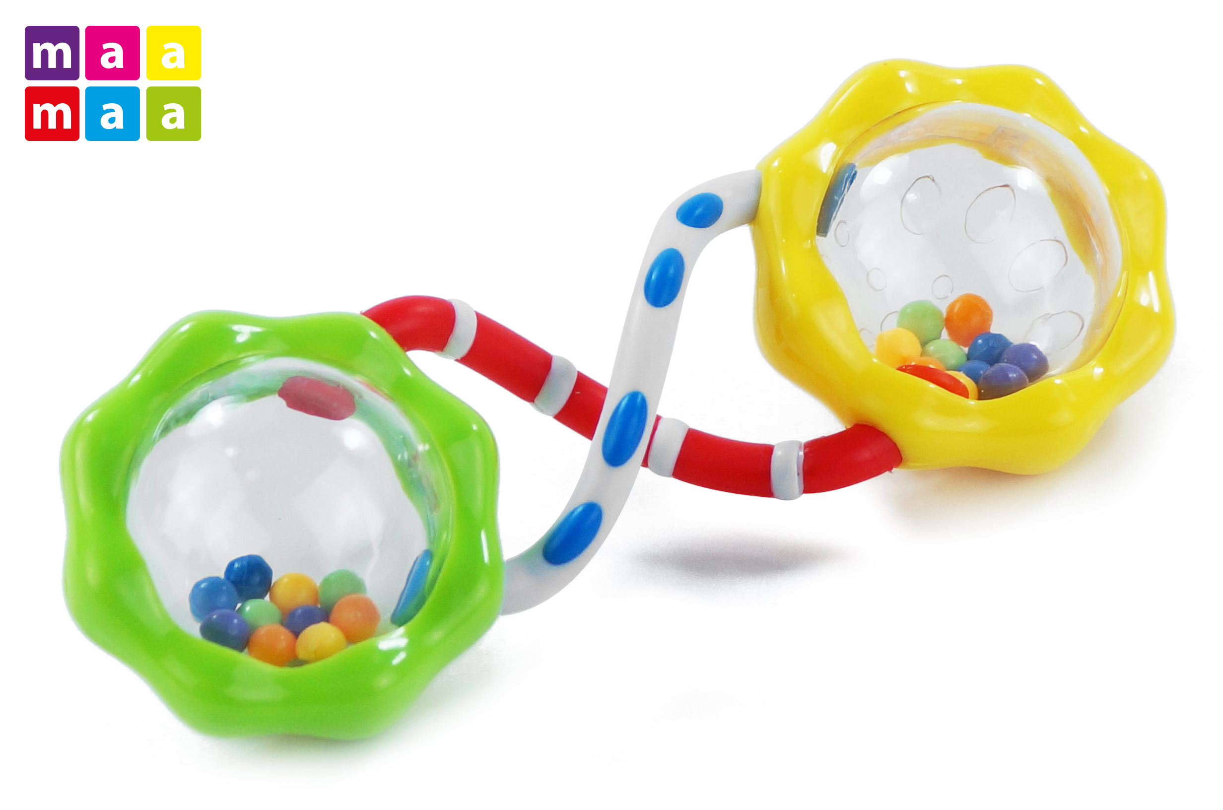 - Kolorowe wewnętrzne kuleczki tworzą przyjemny dźwięk