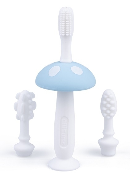 Kartáček zpříjemní čištění prvních zoubků těm nejmenším! Sada obsahuje rukojeť, která se pohodlně drží, zdobená houbovým kloboukem a tři výměnné hroty, lišící se tvarem a uspořádáním výstupků. Kartáček je vyroben z bezpečného, ??hygienického silikonu, takže jej po každém použití snadno vyčistíte.