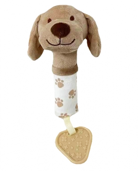 Plyšová hračka s pískátkem a kousátkem Pejsek, 17 cm - béžová
