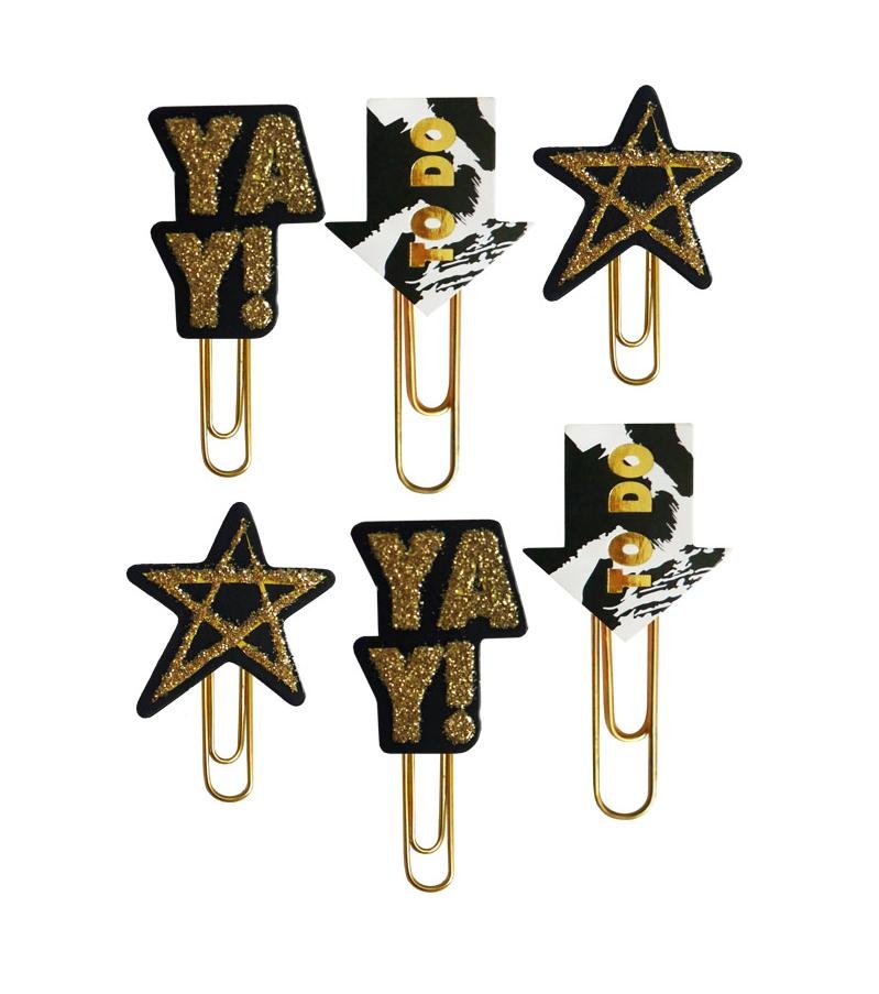 Zestaw 6 spinaczy w złotej i czarnej kolorystyce. przeczytaj całość