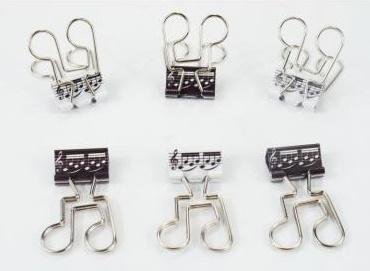6 sztuk biurowych klipsów do papieru w kształcie nut ósemek, o rozmiarach 19 x 40 mm. Klipsy są w dwóch kolorach: czarne i białe. Doskonale nadają się do spinania nut - idealny, drobny prezent dla każdego melomana. przeczytaj całość