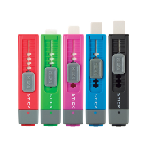Dzięki kompaktowej konstrukcji gumka z temperówką MILAN Stick jest wysuwana, co oznacza, że nie zajmuje niepotrzebnie dużo miejsca i łatwo zmieści się w piórniku lub torbie.