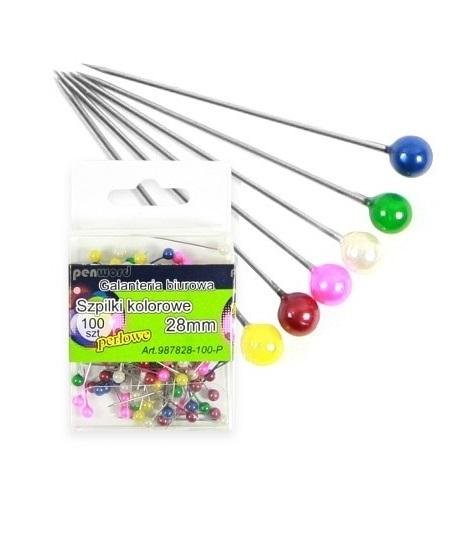 Szpilki kolorowe perłowe 28mm 100szt