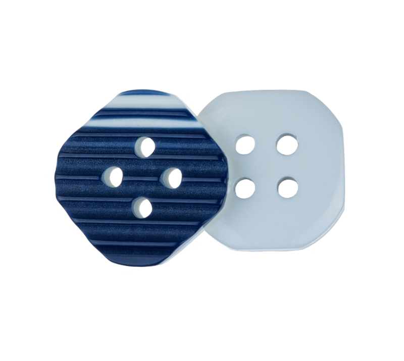 Knoflík - balení po 10ks - bílý s modrými proužky - 13,5x13,5 mm