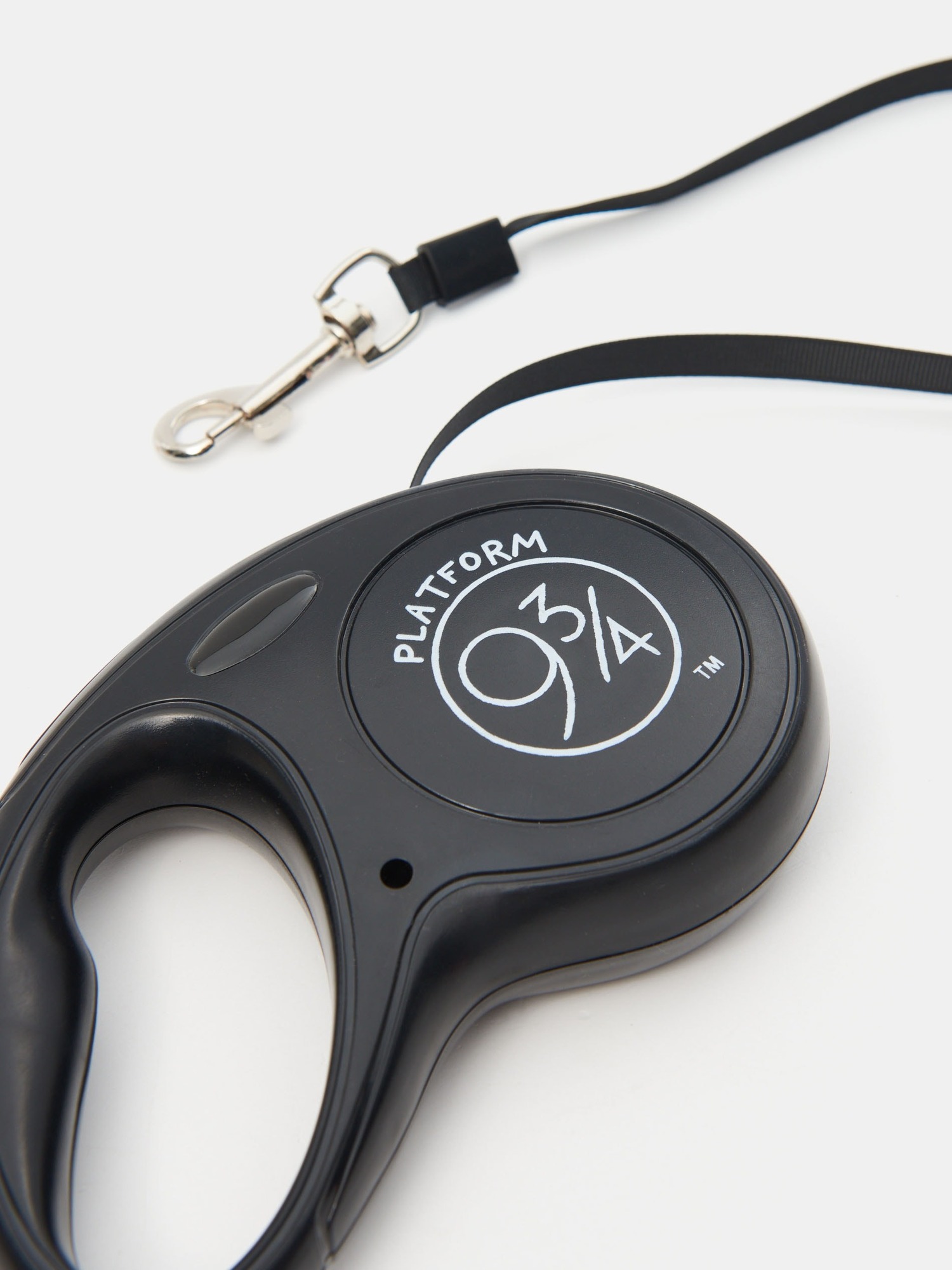 Černé vodítko pro domácího mazlíčka s motivem slavného Nástupiště 9 a 3/4 z Harryho Pottera. przeczytaj całość