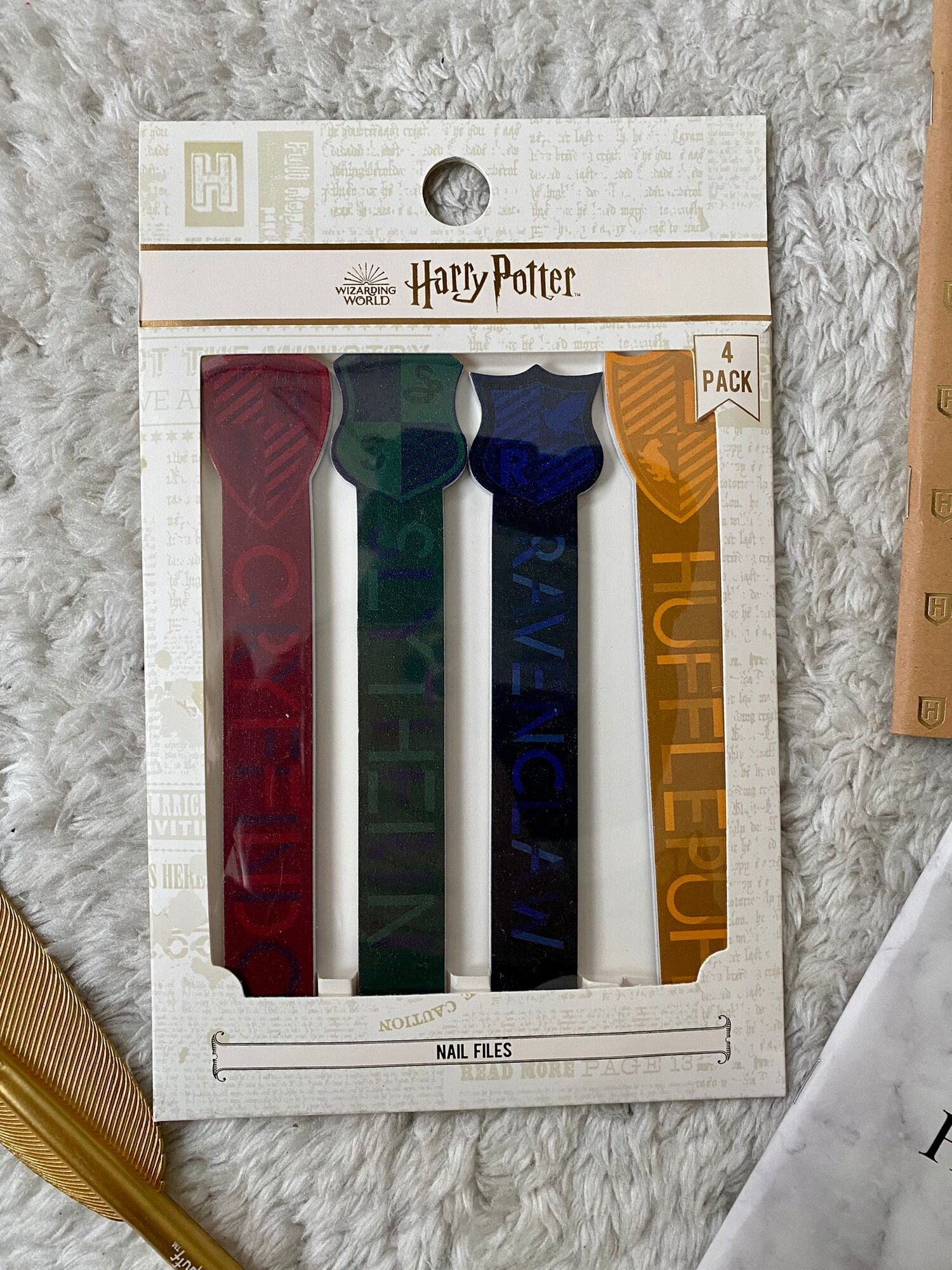 Pilníky na nehty v designu bradavických kolejí - Havraspár, Mrzimor, Nebelvír a Zmijozel. Sada obsahuje všechny 4 pilníky. przeczytaj całość