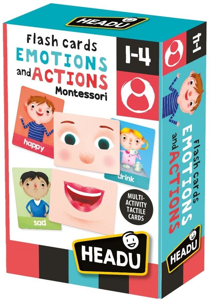 Wielofunkcyjne karty dotykowe Emocje i Reakcje. Zagraj w wiele gier edukacyjnych z tym zestawem czterdziestu dotykowych fiszek: rozpoznawaj emocje, mimikę i codzienne czynności, obserwując zdjęcia chłopców i dziewcząt. Baw się dobrze, łącząc je i robiąc śmieszne miny! Gra uczy dziecko rozpoznawania i wyrażania emocji oraz codziennych czynności. Dziecko poznaje tez nowe słowa. Wiek: 1-4.