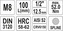 Materiál byl podroben zkoušce tvrdosti pro tvrdé materiály podle Rockwella, s výslednou tvrdostí HRC58-62.