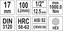 Materiál byl podroben zkoušce tvrdosti pro tvrdé materiály podle Rockwella, s výslednou tvrdostí HRC58-62.