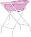 można używać na stojaku lub samodzielnie, antypoślizgowa powłoka na dnie i bokach wanienki, wbudowany uchwyt na mydło i szampon, wyposażona w korek do łatwego spuszczania zużytej wody, składany stojak pod wanienkę dla wygody rodziców, wymiary zewnętrzne (wanienka + stojak): 91 x 89 x 53 cm, wewnętrzne wymiary wanienki: 27 x 55 x 32 cm ,