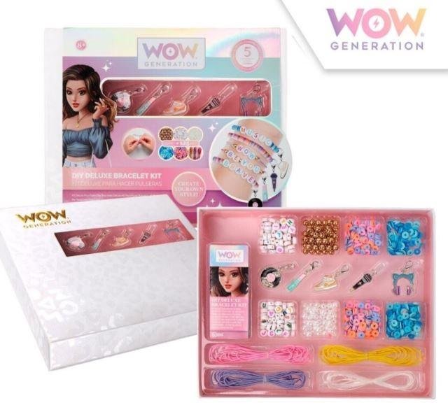 Sada na výrobu náramků de lux.Rozměry: 23x19 cm.Obsahuje 5 náramků, 70 písmenkových korálků, 100barevných korálků,5 přívěsků.Pro děti od 8 let.Výrobce: Euroswan. przeczytaj całość