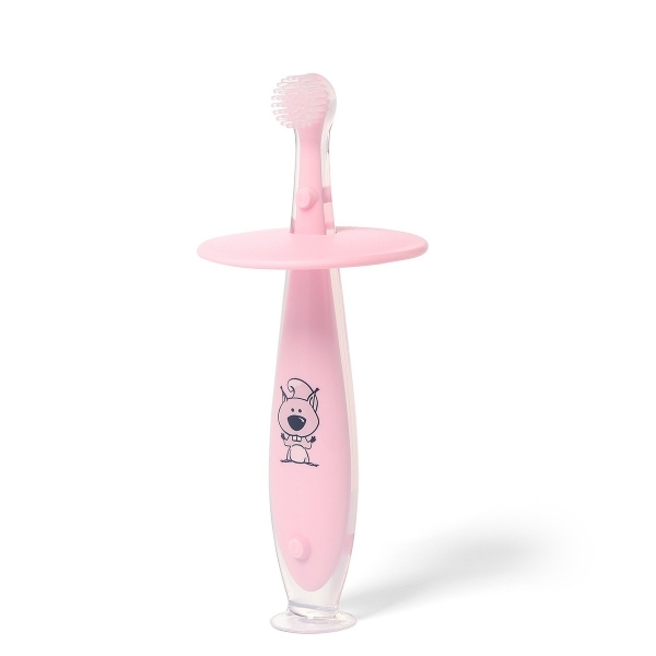 BabyOno Bezpečný kartáček na zoubky 6 m+ - růžový