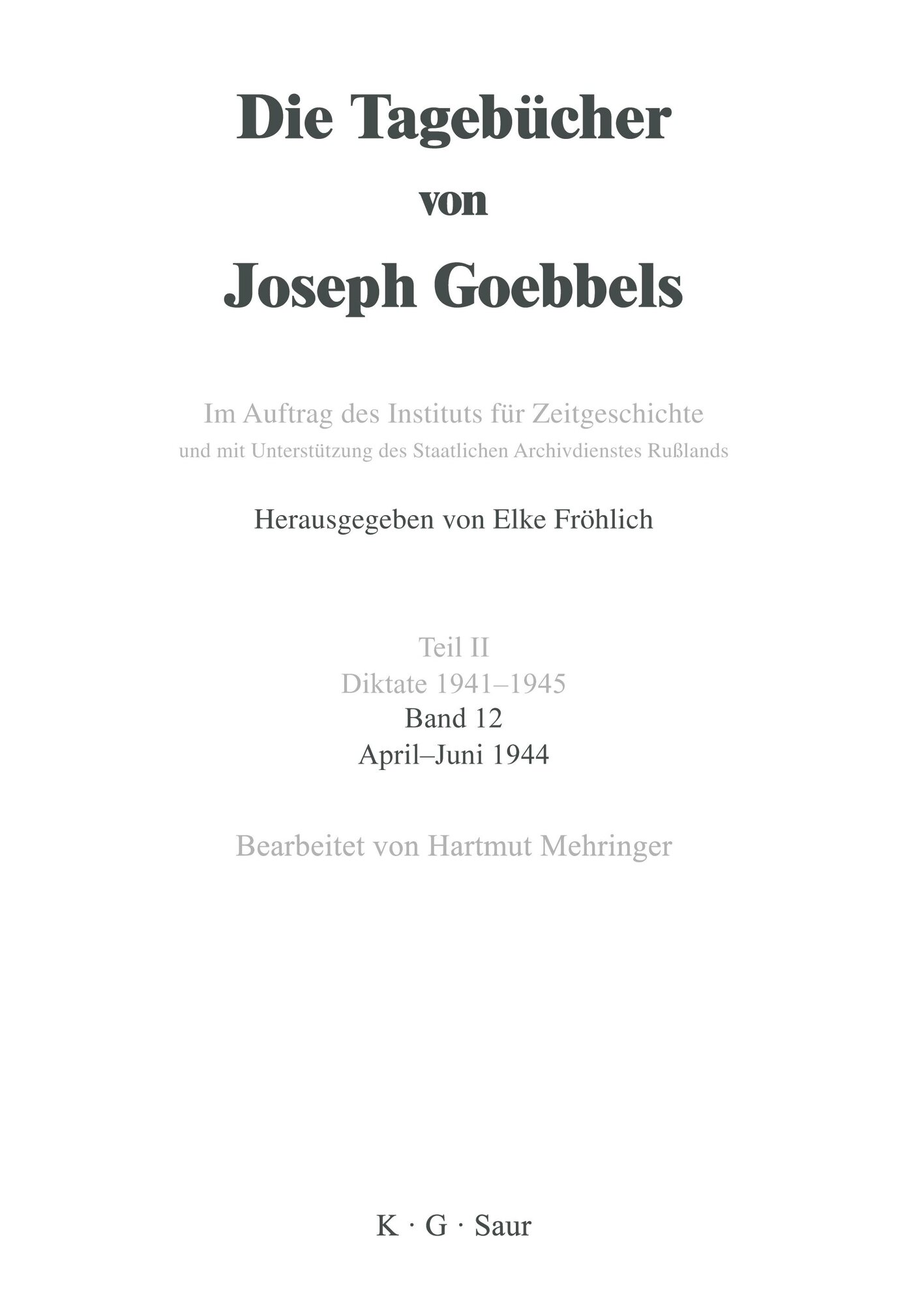 Die Tagebücher von Joseph Goebbels, Band 12, April - Juni 1944 (niemiecki)