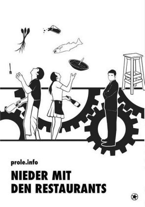 Eine illustrierte Einführung in die Funktionsweise moderner Restaurants: Elend, Stress, Entfremdung, Fadesse formen den Widerstand der Angestellten gegen ihre Arbeitsbedingungen. Durch persönliche Erfahrungen und einem antikapitalistischen Hintergrund gelang es, diese Analyse mit einem Aufruf zur Militanz zu mischen und mit fantastischen Zeichnungen unterhaltsam zu gestalten.