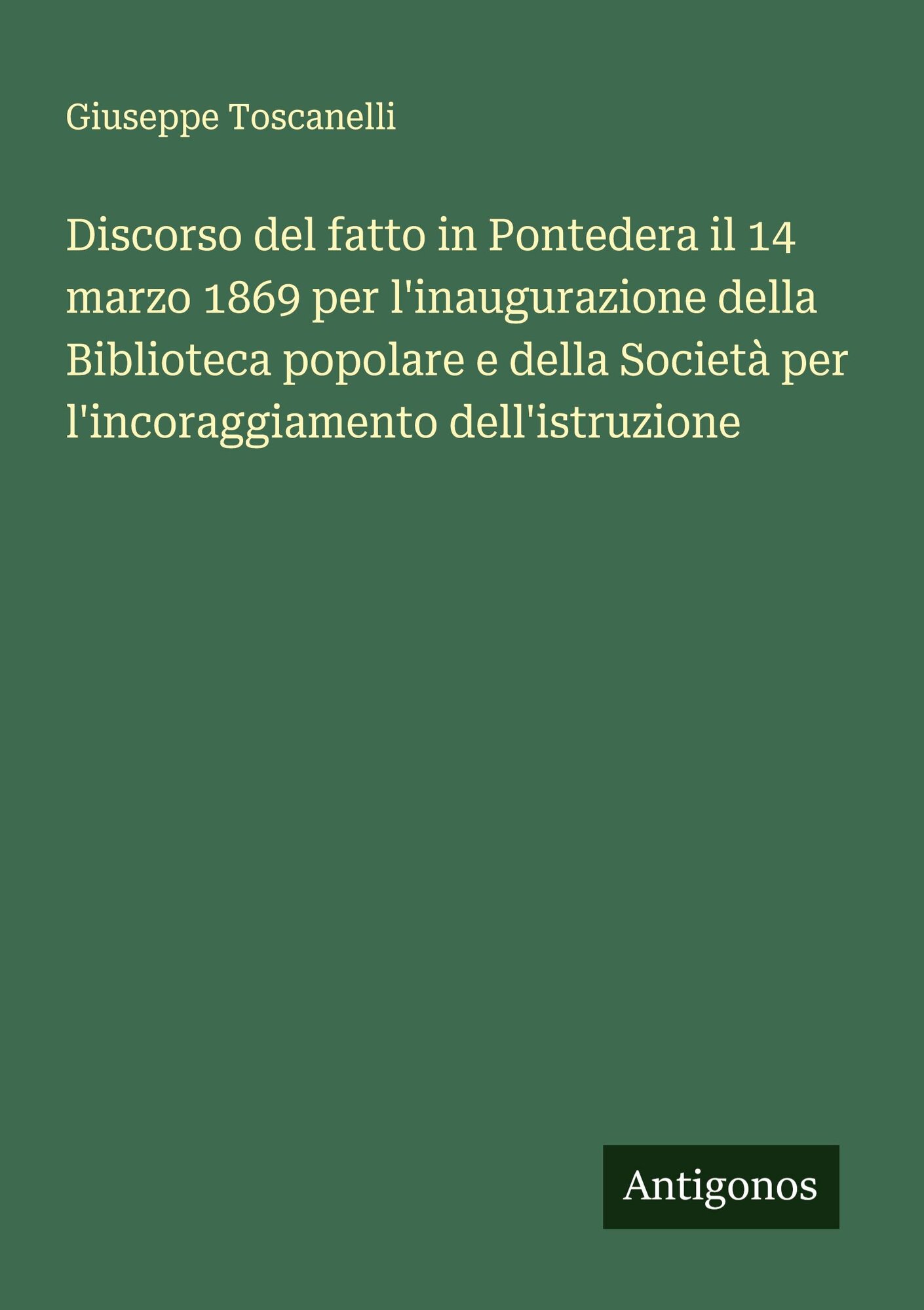 Discorso del fatto in Pontedera il 14 marzo 1869 per l'inaugurazione della Biblioteca popolare e della Società per l'incoraggiam (włoski)