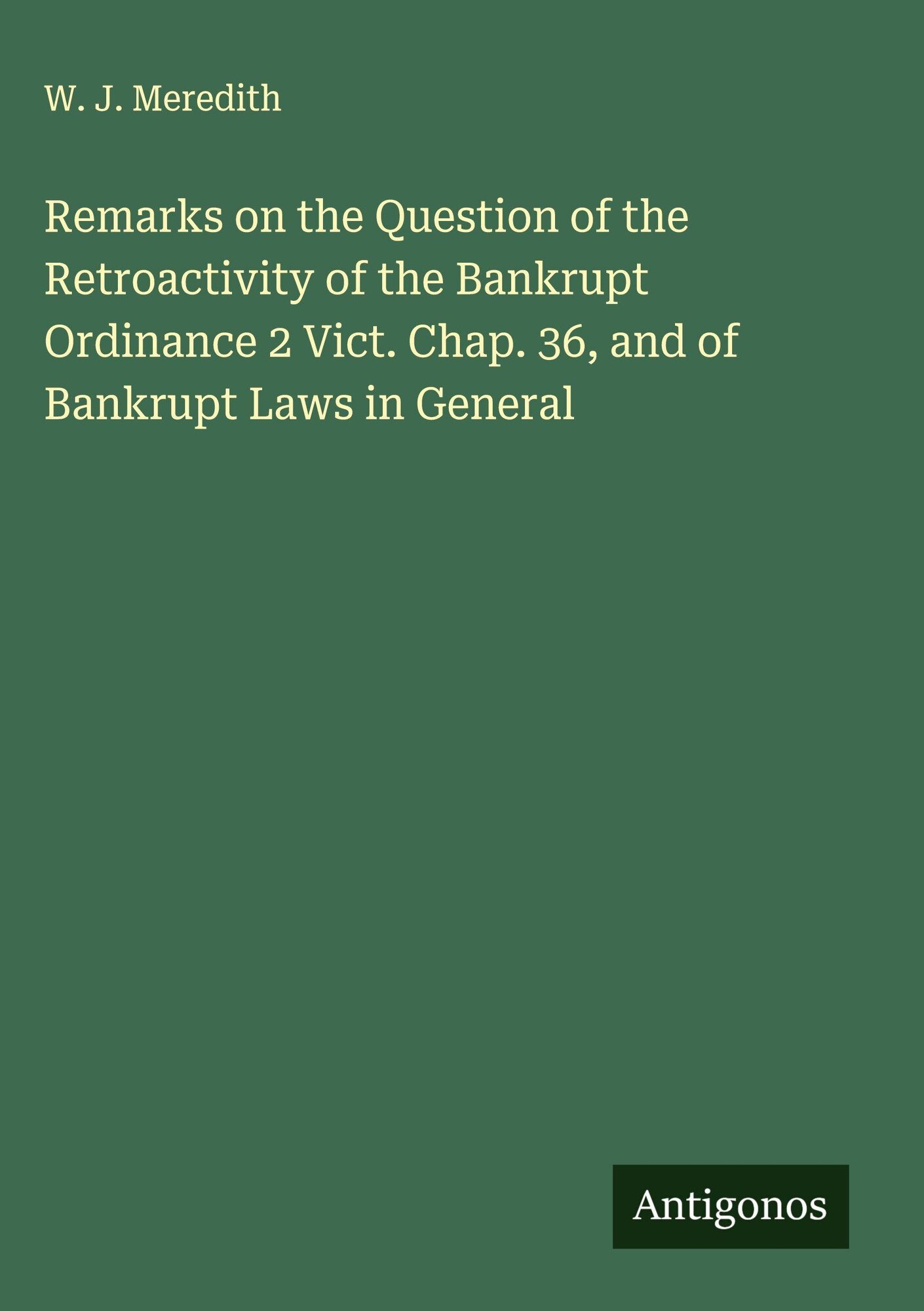 Remarks on the Question of the Retroactivity of the Bankrupt Ordinance 2 Vict. Chap. 36, and of Bankrupt Laws in General (angielski)