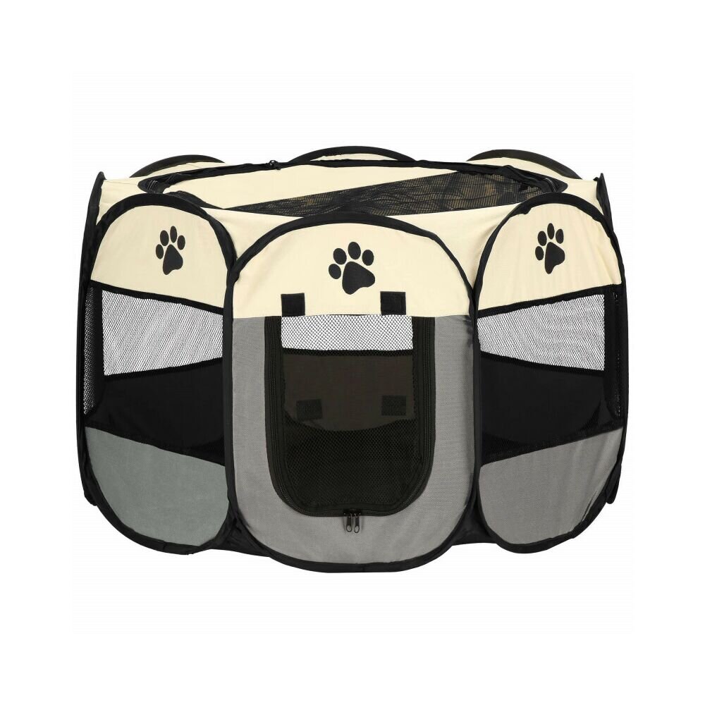 Składany kojec dla psów i kotów. Szybkie i łatwe składanie i rozkładanie. Uniwersalne zastosowanie. Wytrzymały materiał, łatwy do czyszczenia. Ściany pełnią funkcję ochrony przed owadami, zapewniają pełną cyrkulację powietrza, zdejmowany dach. Ciekawy design, stonowane kolory. przeczytaj całość